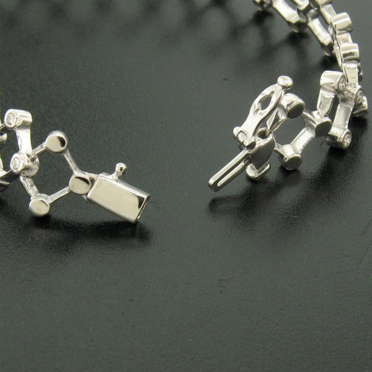 A like new 14kt white gold trellis bracelet with 0.90ctw of round diamonds (G/H - SI1). It weighs a total of 15.6 grams, measures 11.6mm wide, and measures 7 inches in length.
