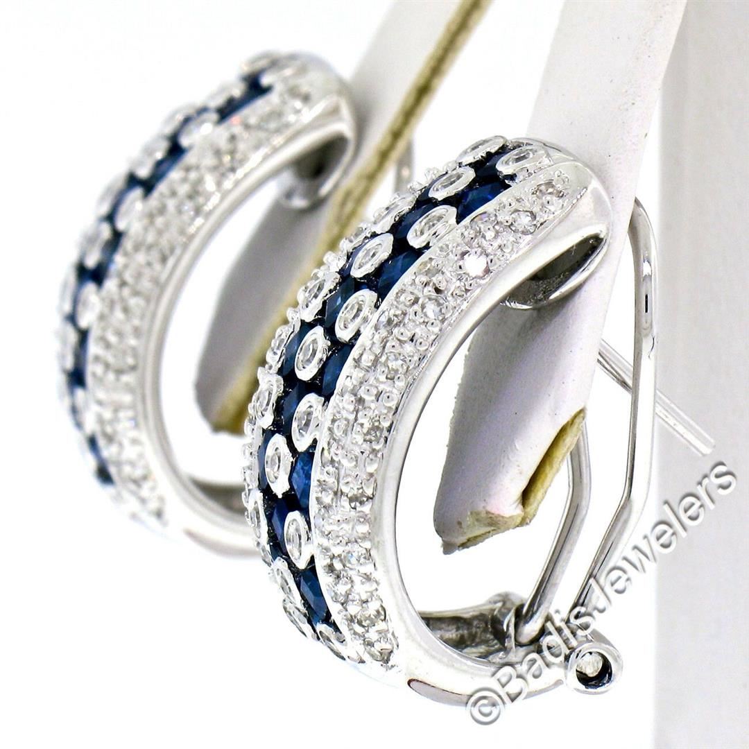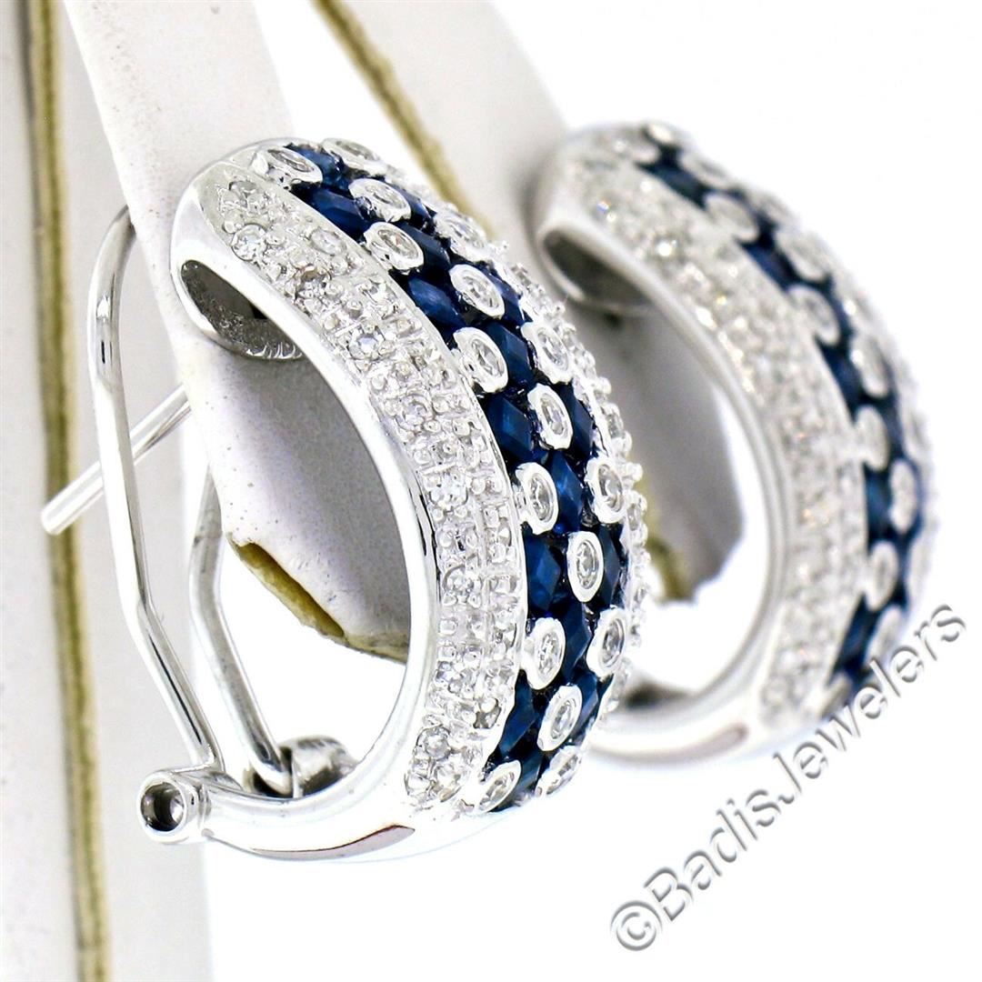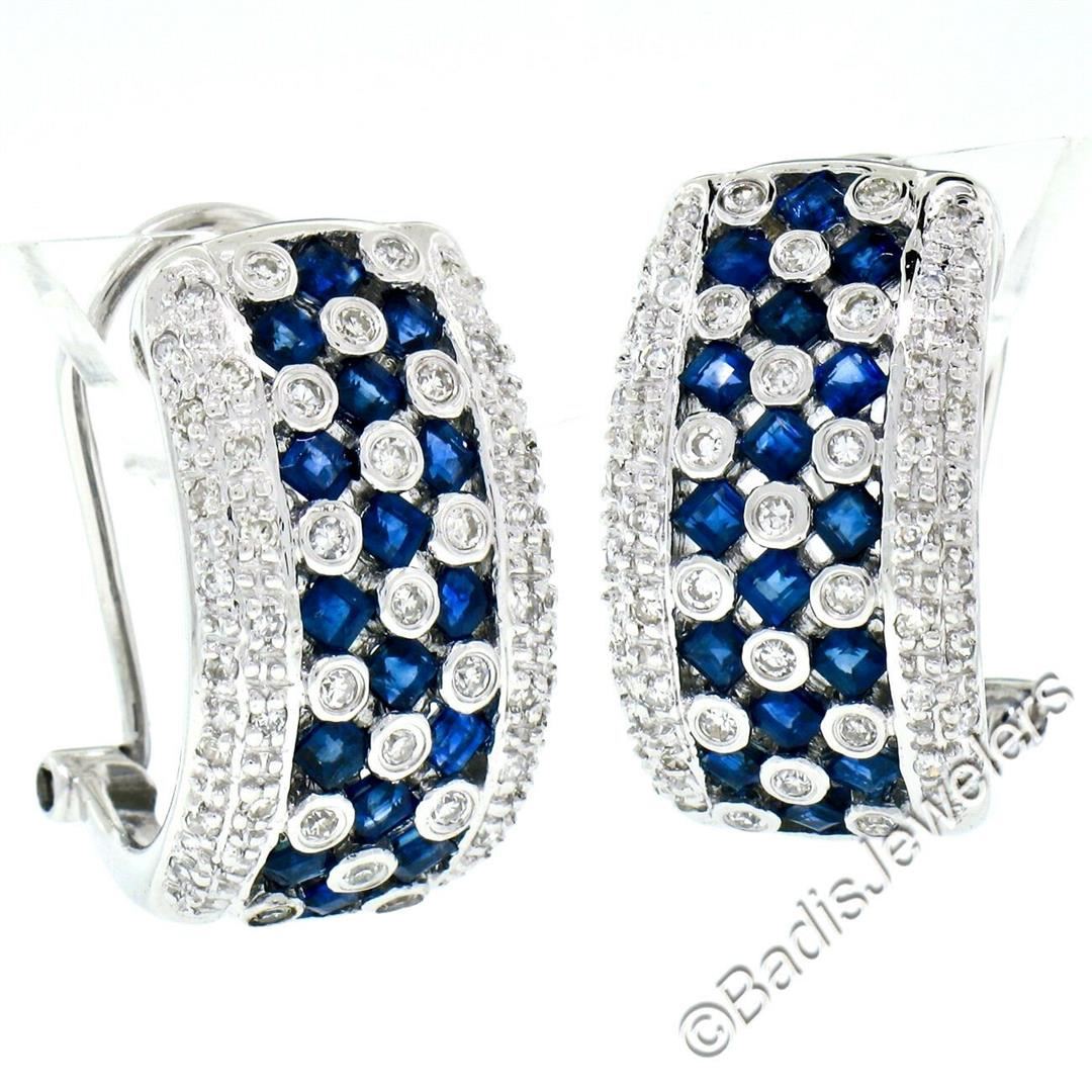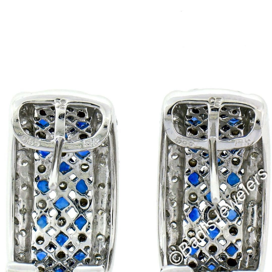 A pair of 14kt white gold checkerboard cuff earrings with 2.00ctw of square sapphires and 0.32ctw round diamonds (H/I - SI1/SI2). The earrings measure approximately 20.00x11.85mm and weigh a total of 9.5 grams.