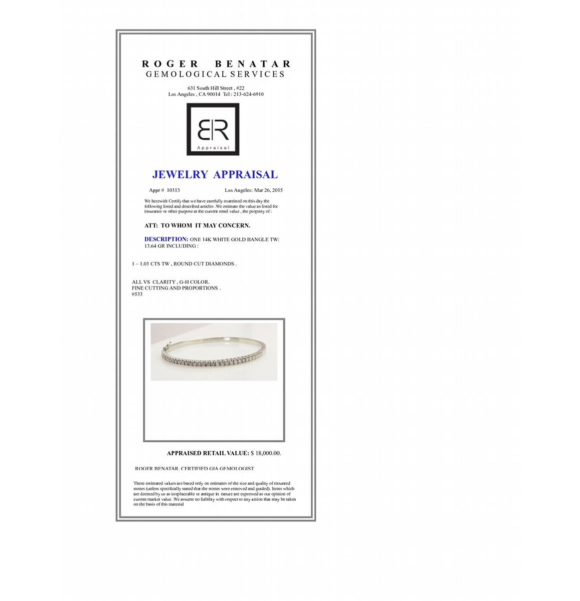 14kt White Gold 13.64 Approx grams including, 1.03ctw Round Diamond G-H color VS clarity, should fit 7"
