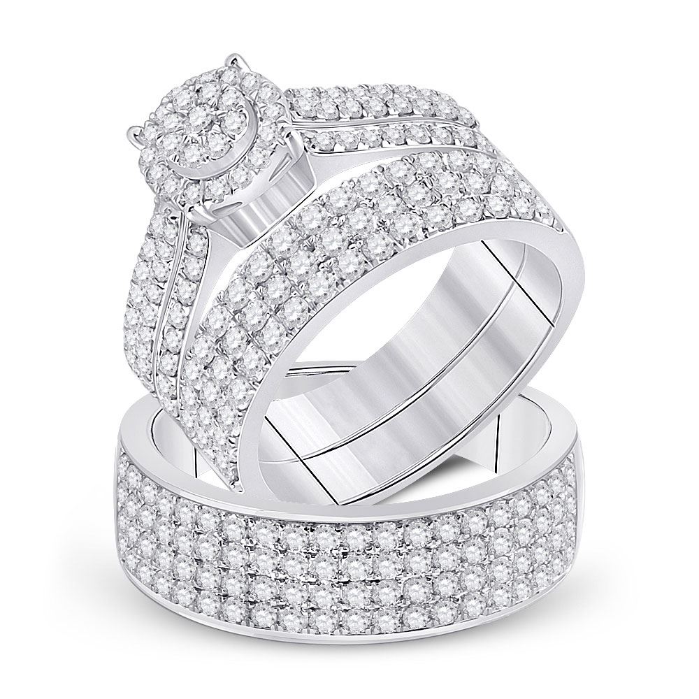 14kt White Gold His Hers Diamond Cluster Matching Wedding Set 2-5/8 Cttw
