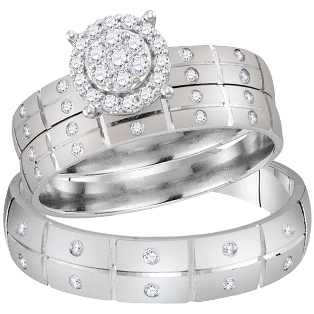 SKU: RB113867 ---- 14kt White Gold His & Hers Round Diamond Cluster Matching Bridal Wedding Ring Band Set 1/3 Cttw