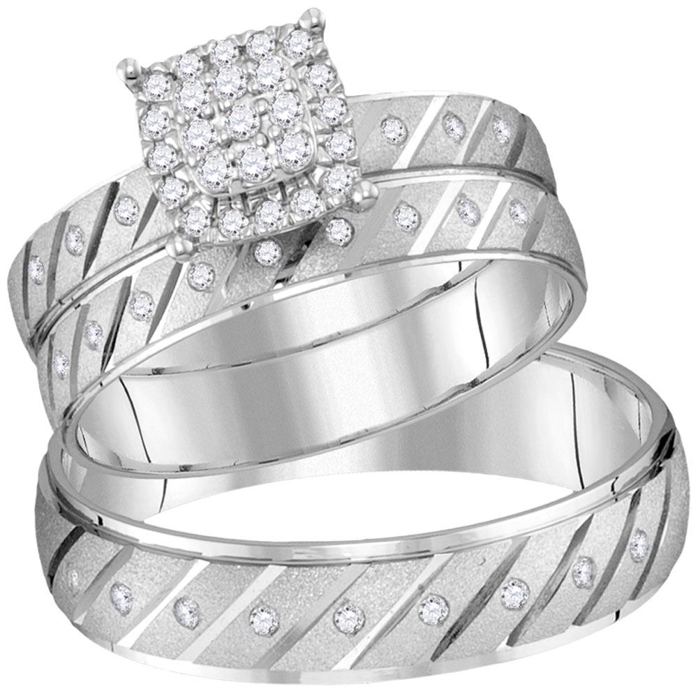 14kt White Gold His & Hers Round Diamond Cluster Matching Bridal Wedding Ring Band Set 1/3 Cttw