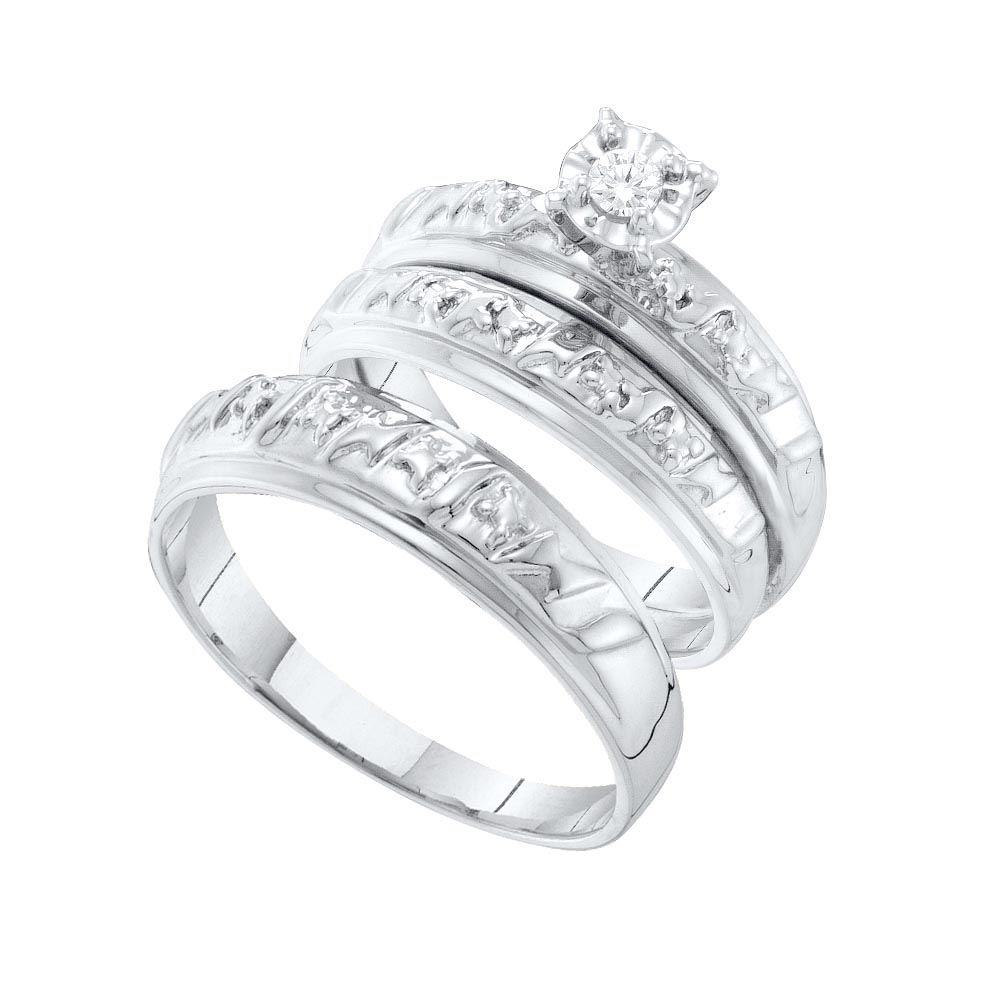 14kt White Gold His & Hers Round Diamond Solitaire Matc **|**|** 14kt White Gold His & Hers Round Diamond Solitaire Matching Bridal Wedding Ring Band Set 1/12 Cttw
