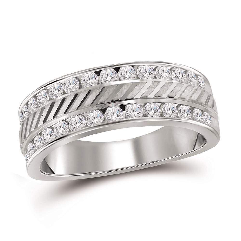 14kt White Gold Mens Round Channel-set Diamond Double Row Grecco Wedding Band Ring 1.00 Cttw