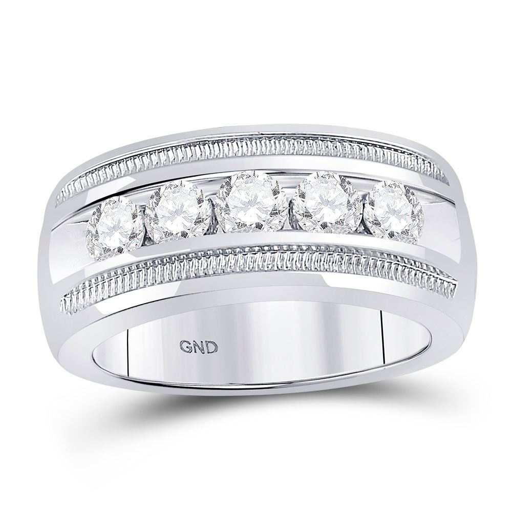 14kt White Gold Mens Round Diamond Single Row 5-Stone Wedding Band Ring 1-1/2 Cttw