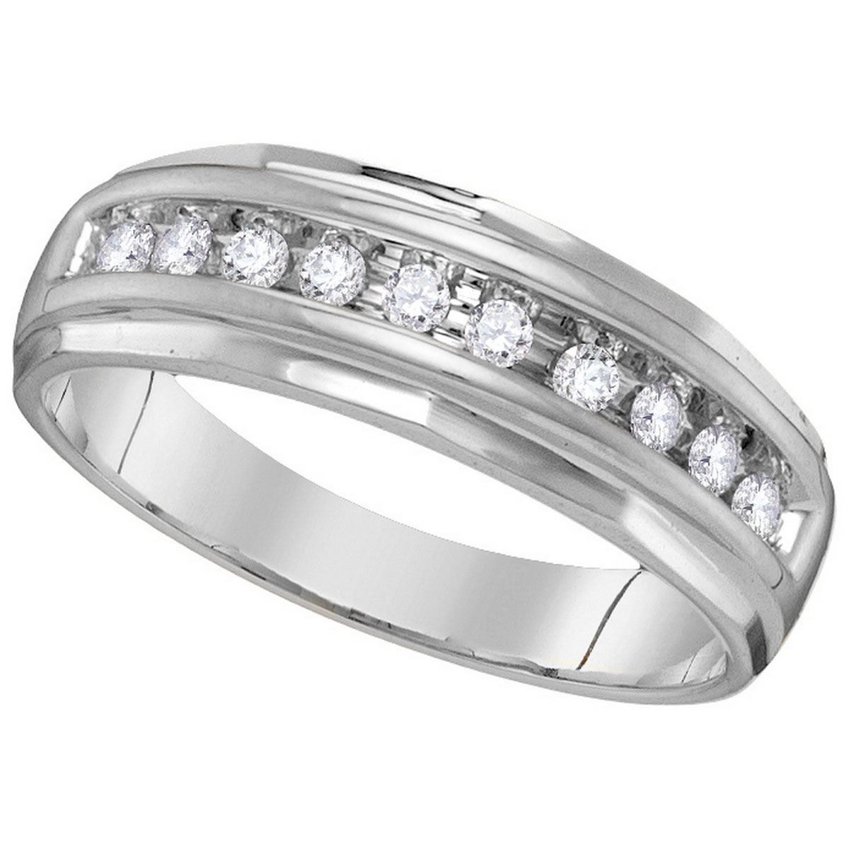14kt White Gold Mens Round Diamond Single Row Grooved W **|**|** 14kt White Gold Mens Round Diamond Single Row Grooved Wedding Band Ring 1/4 Cttw