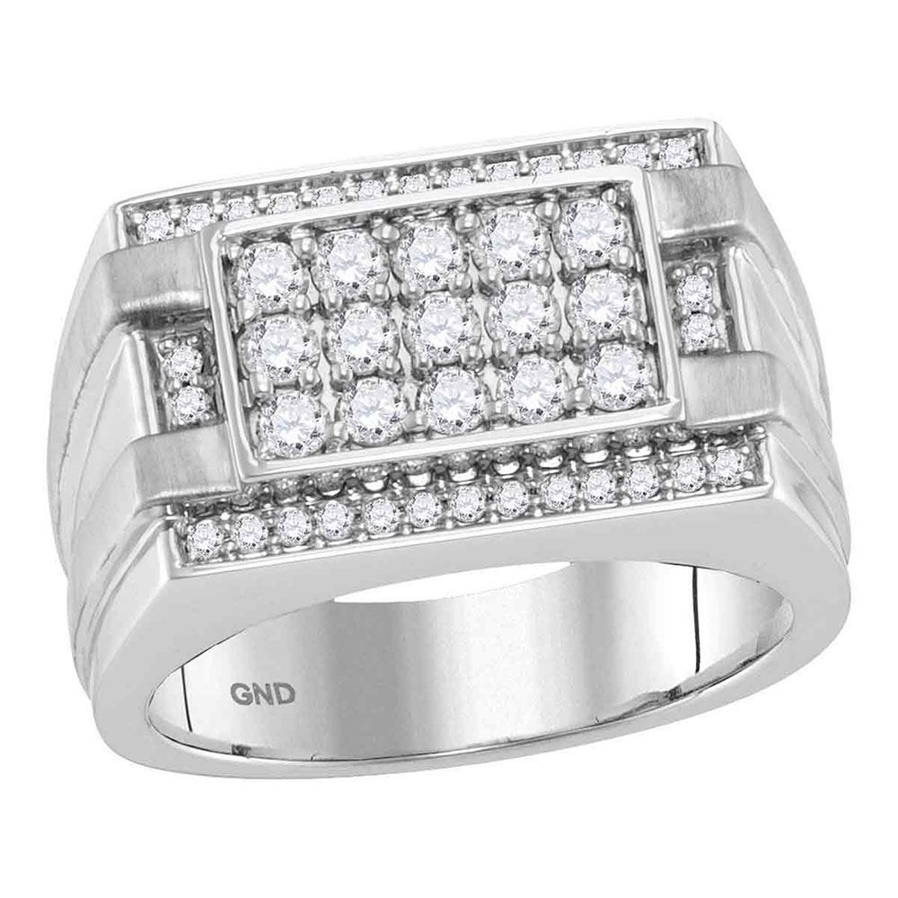 14kt White Gold Mens Round Diamond Square Cluster Ring 1.00 Cttw