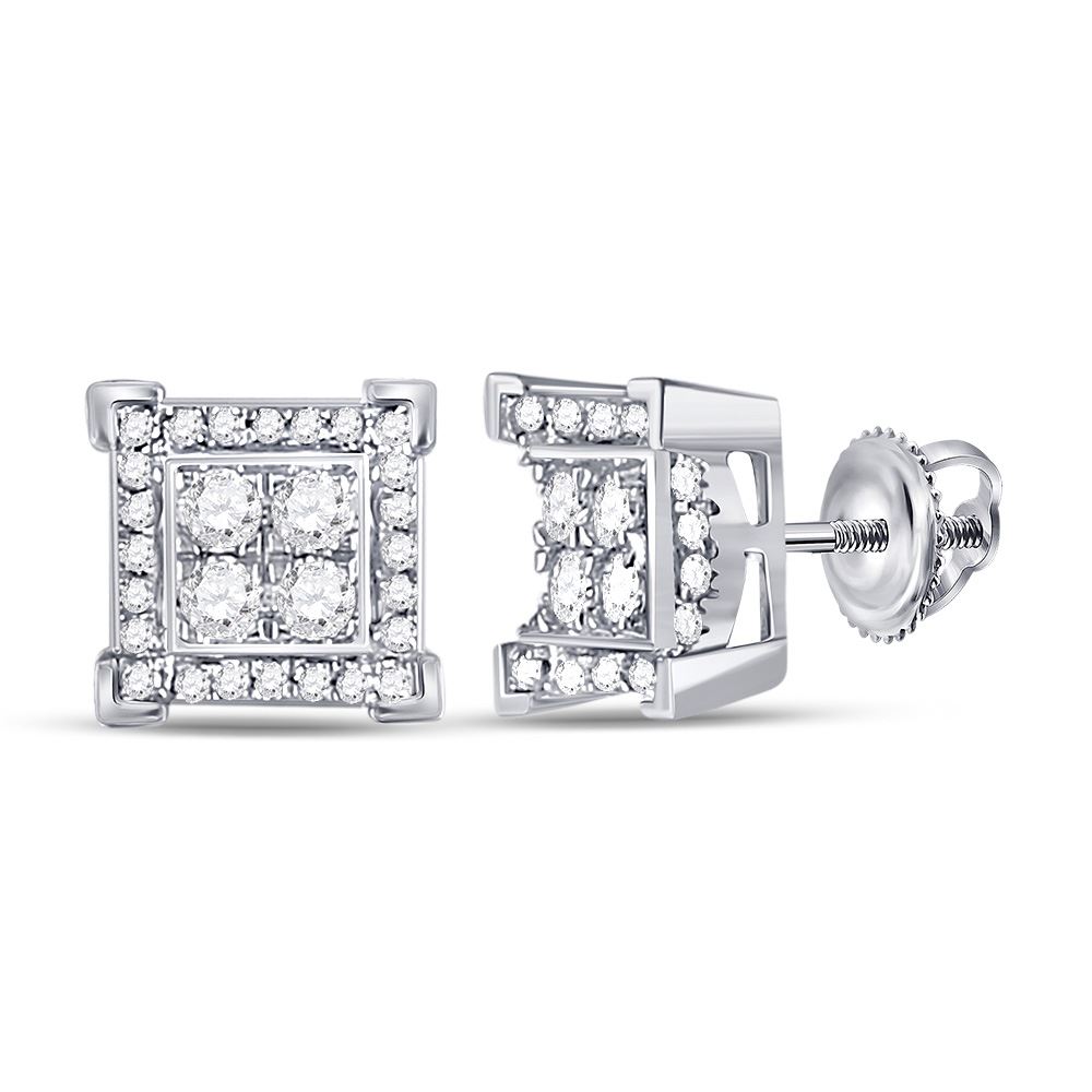 14kt White Gold Mens Round Diamond Square Earrings 1/3 Cttw