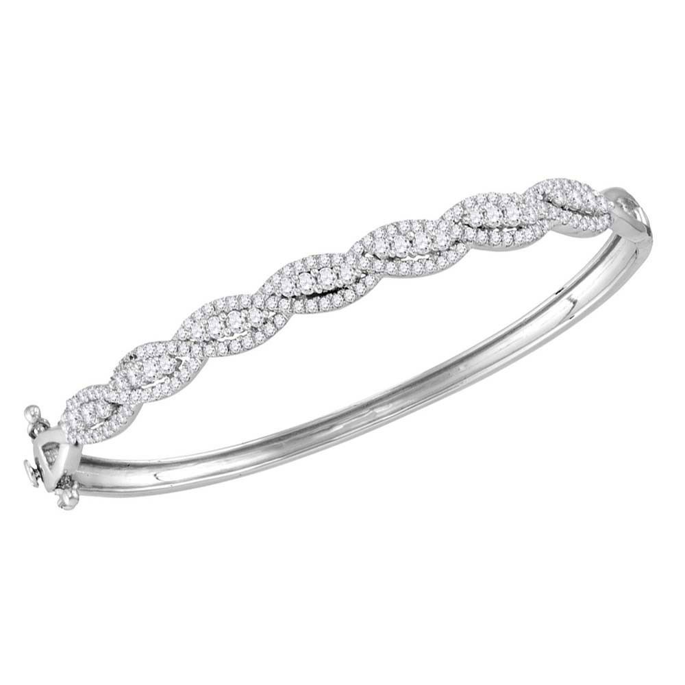 14kt White Gold Womens Round Diamond Cascade Twist Bangle Bracelet 1-3/4 Cttw
