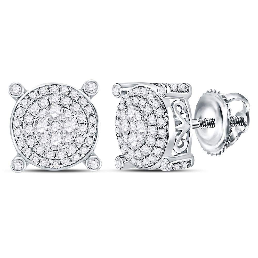 14kt White Gold Round Diamond Circle Frame Cluster Earrings 1/2 Cttw