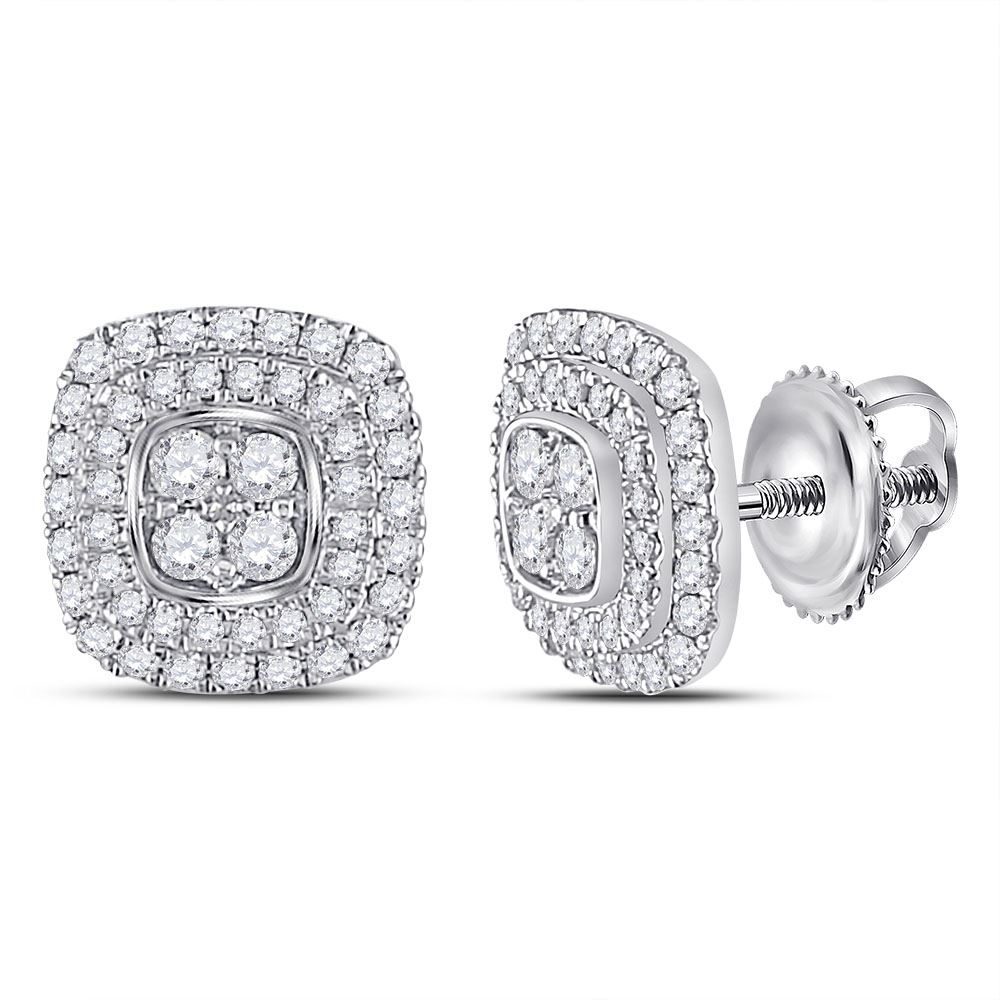 14kt White Gold Round Diamond Cushion Cluster Earrings 1/2 Cttw