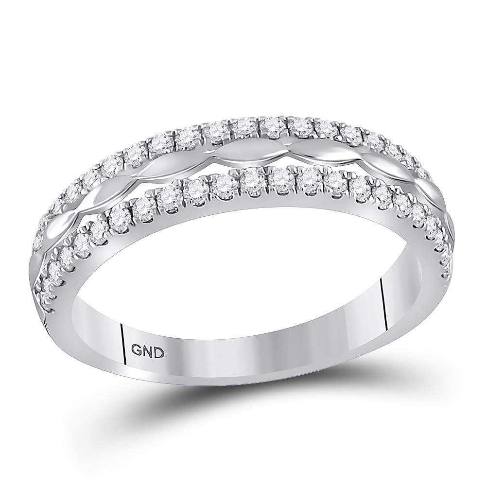 SKU: RB119411 ---- 14kt White Gold Round Diamond Double Row Band Ring 1/2 Cttw