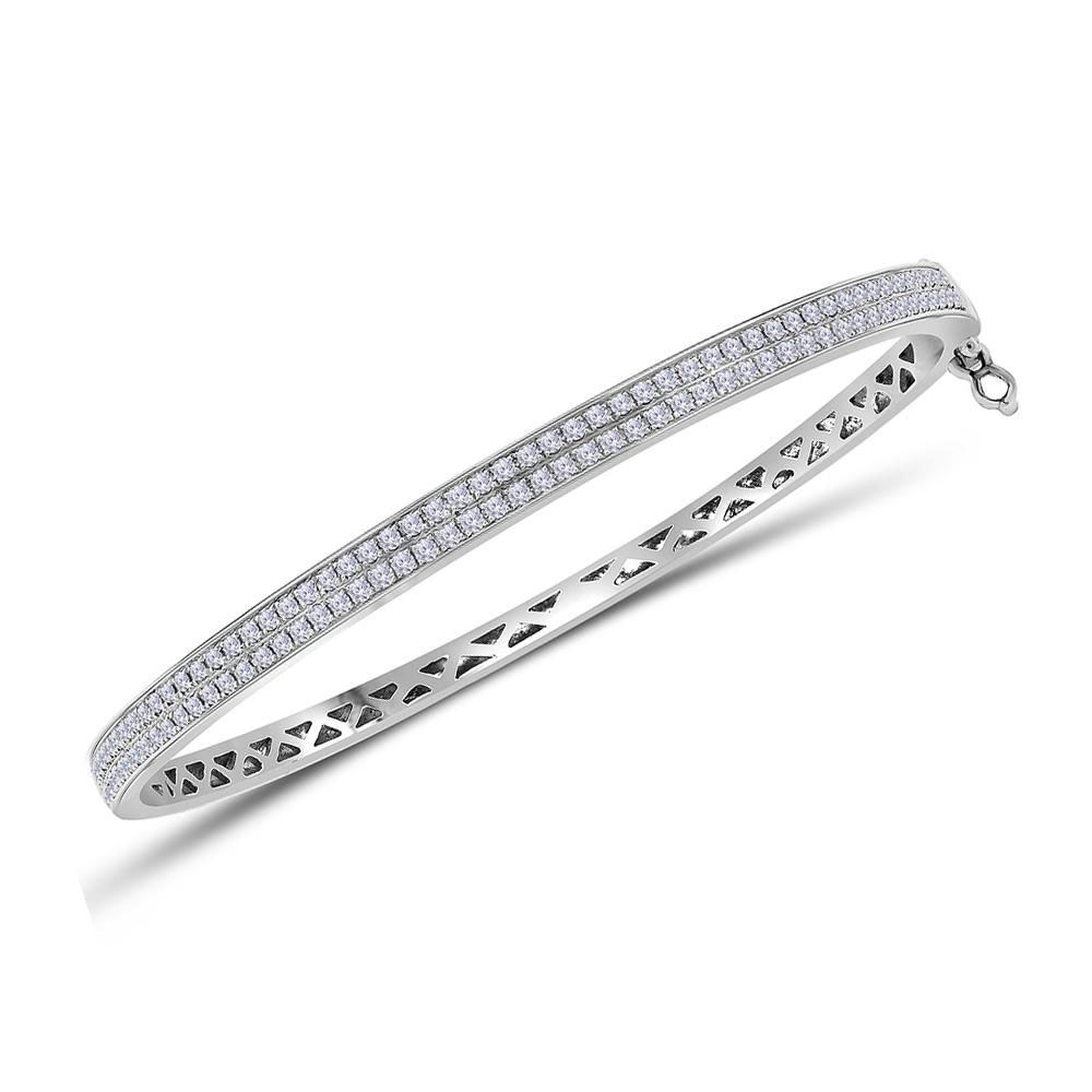 SKU: RB39454 ---- 14kt White Gold Round Diamond Double Row Bangle Bracelet 1.00 Cttw