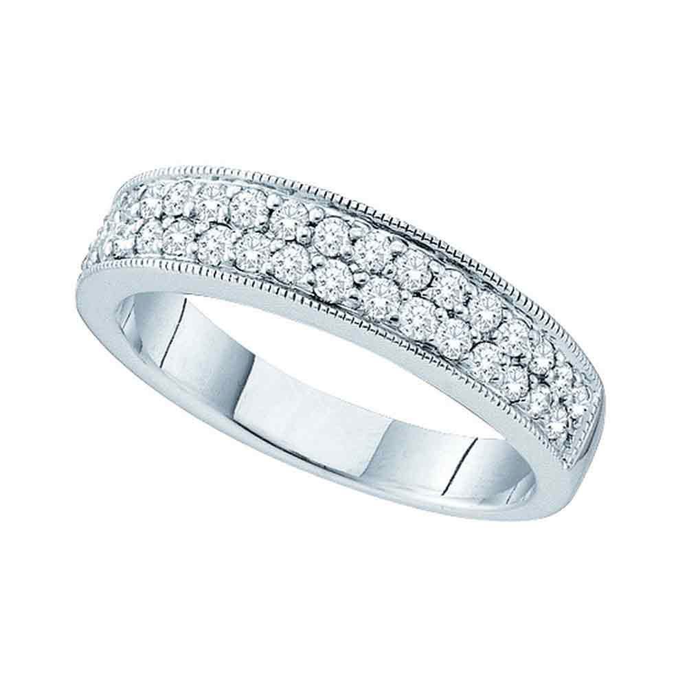 14kt White Gold Womens Round Diamond Double Row Milgrain Band Ring 1/2 Cttw