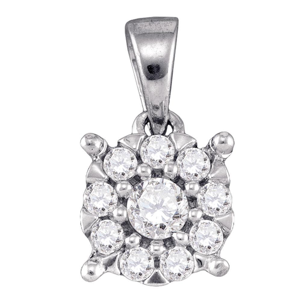 14kt White Gold Round Diamond Flower Cluster Pendant 1/4 Cttw