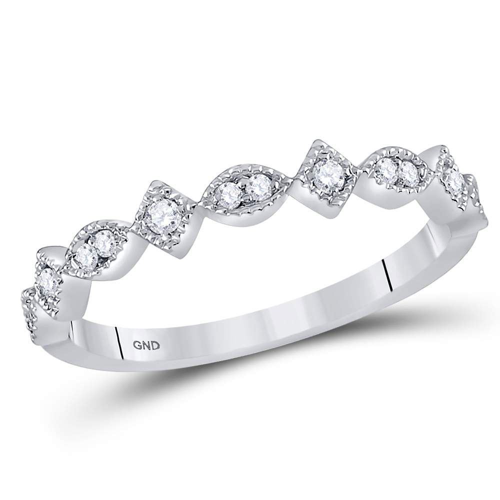 14kt White Gold Womens Round Diamond Geometric Stackable Band Ring 1/10 Cttw