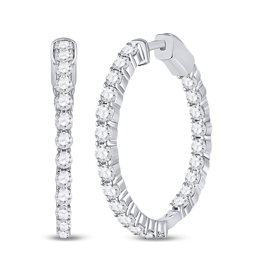 14kt White Gold Round Diamond Inside-Outside Hoop Earrings 3.00 Cttw