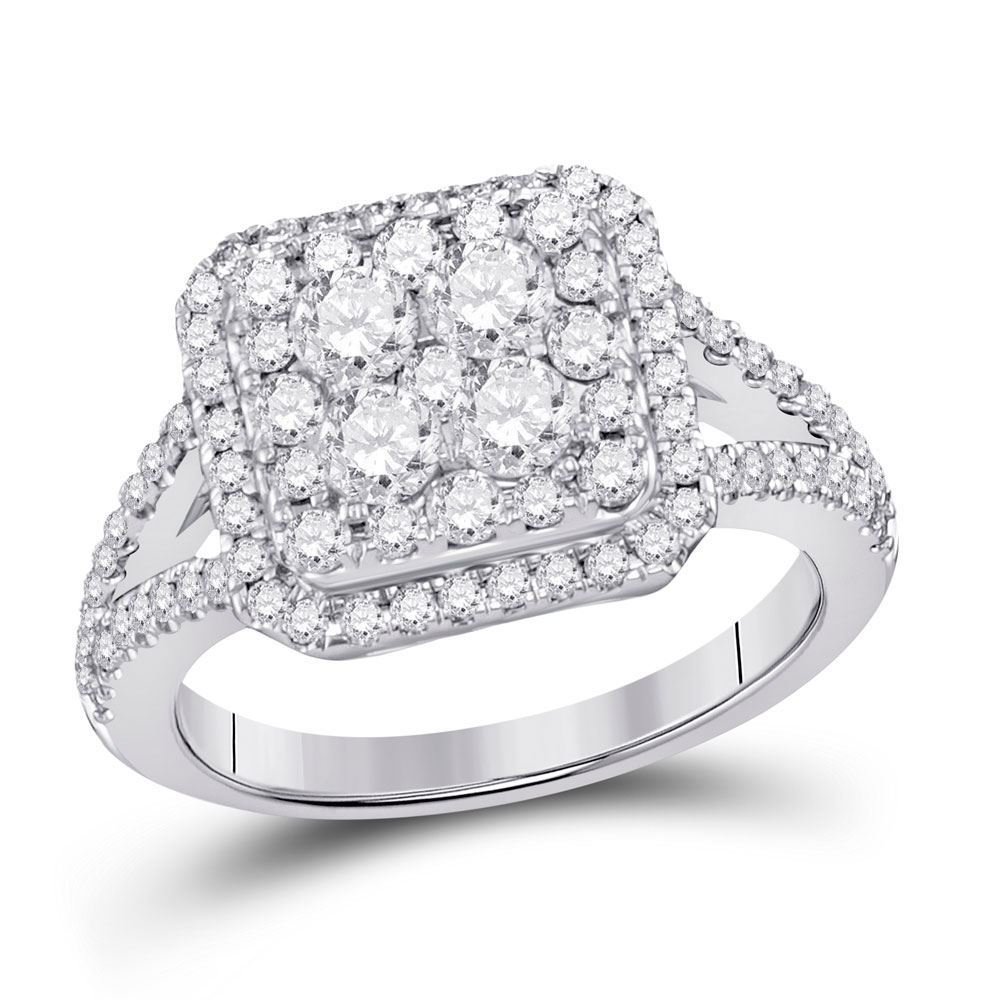 SKU: RB114111 ---- 14kt White Gold Round Diamond Right Hand Cluster Ring 1-1/2 Cttw