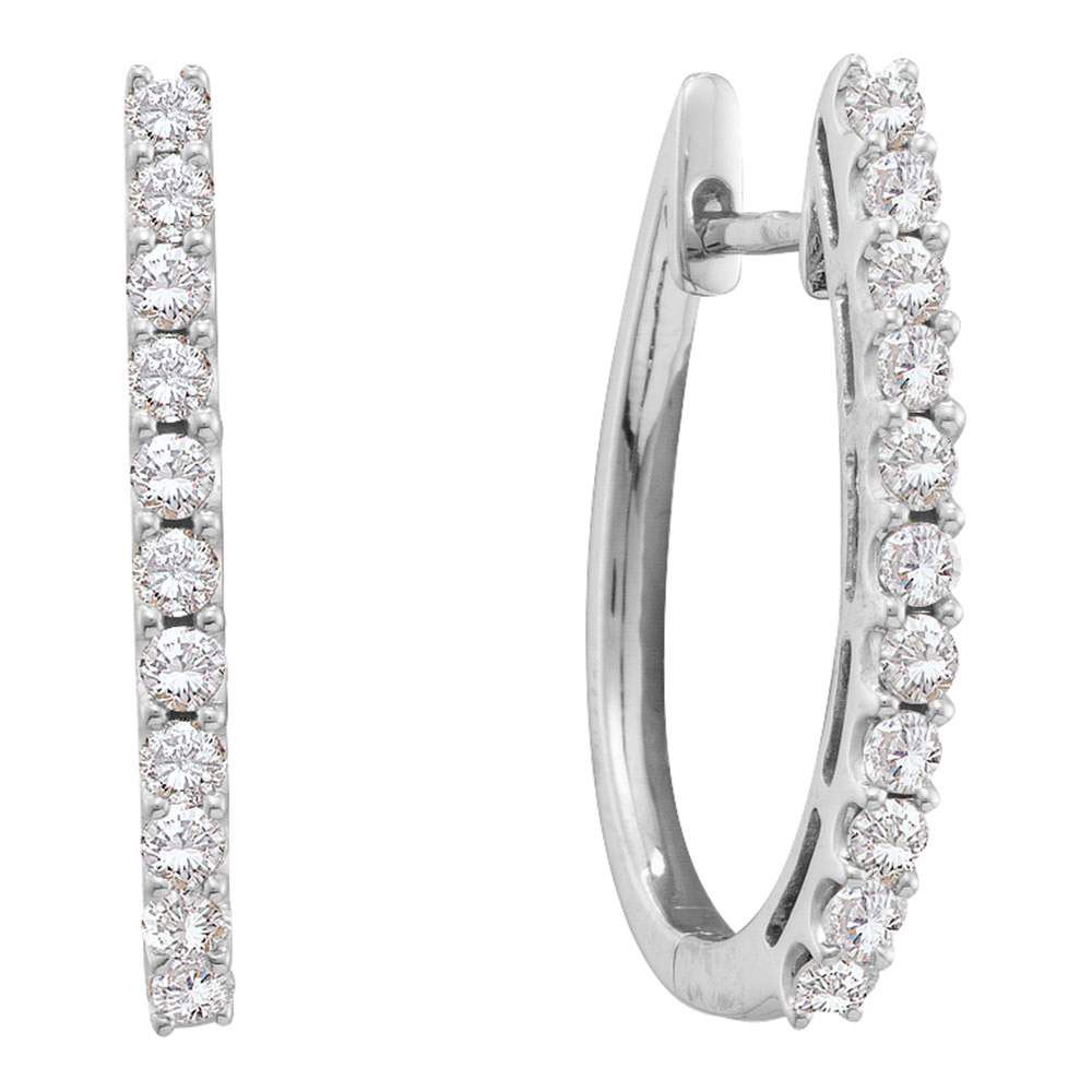 14kt White Gold Womens Round Diamond Single Row Hoop Earrings 1.00 Cttw