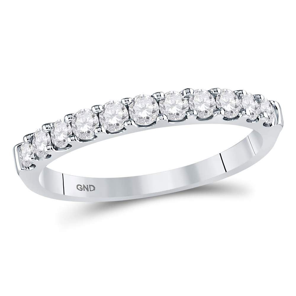 14kt White Gold Womens Round Diamond Single Row Wedding Band 1/2 Cttw