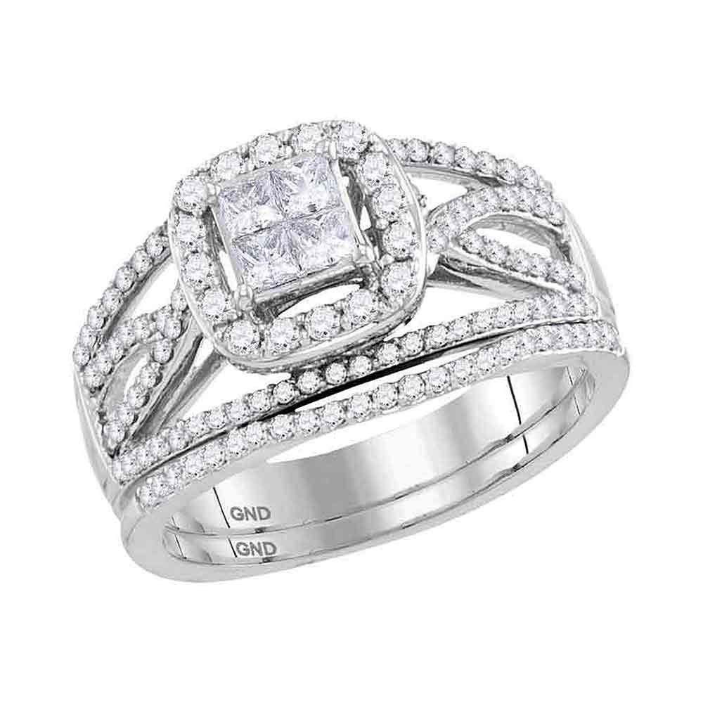 14kt White Gold Round Diamond Square Cluster Stud Earrings 1/2 Cttw