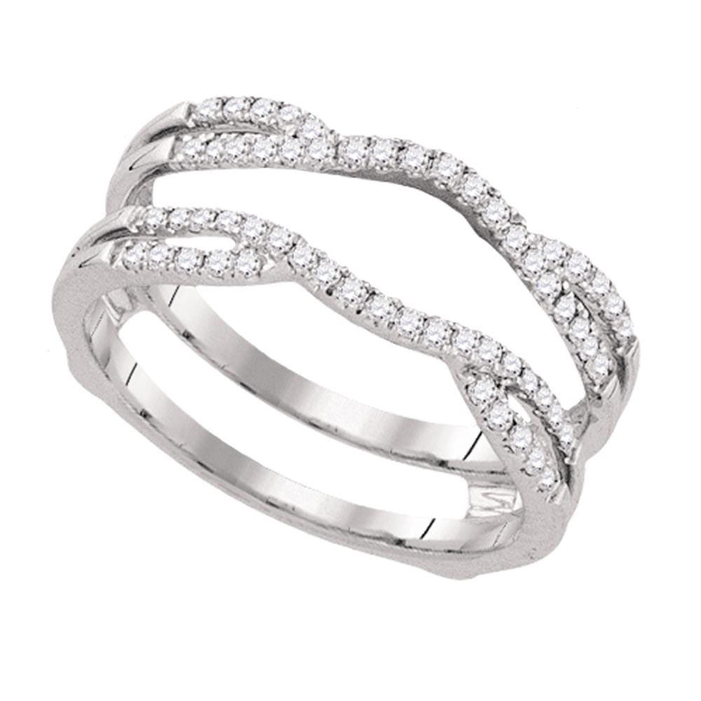 14kt White Gold Round Diamond Wrap Ring Guard Enhancer Wedding Band 1/3 Cttw
