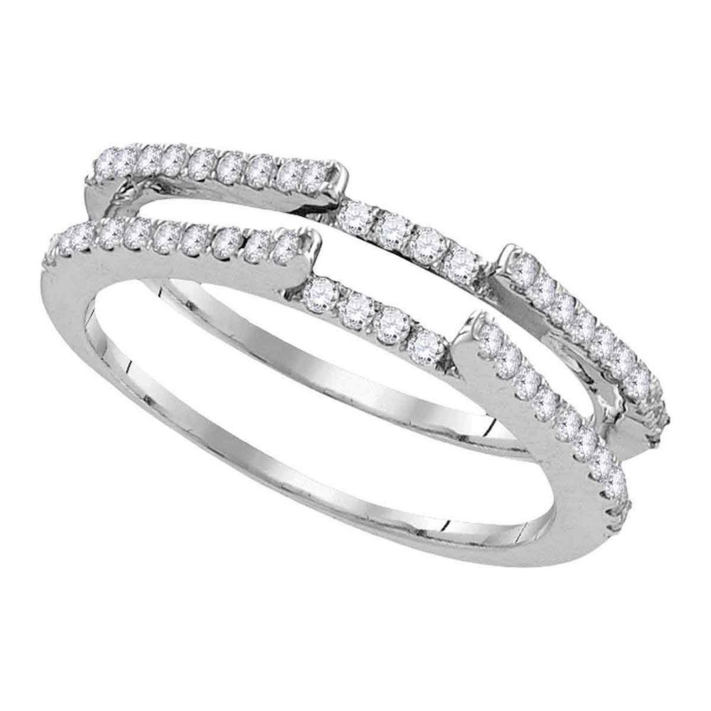 14kt White Gold Womens Round Diamond Ring Guard Wrap Solitaire Enhancer 1/2 Cttw