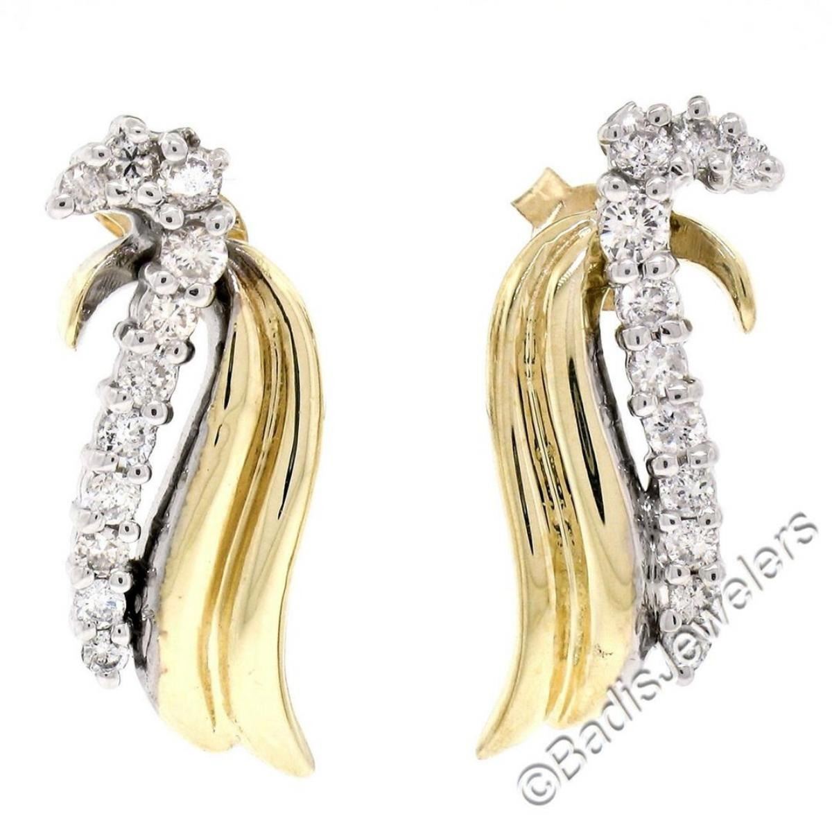 Like new 14kt yellow and white gold earrings set with 0.60ctw of round diamonds (G/H - SI1/SI2). The earrings measure approximately 23.25x9.0mm and weigh a total of 6.01 grams.