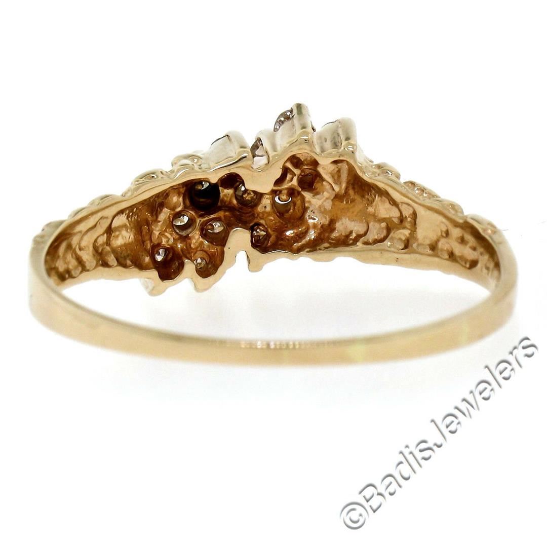 A 14kt yellow gold 0.30ctw round diamond (G/H - VS2/SI1) band ring with a nugget texture. The ring is size 10.0, weighs a total of 2.86 grams, and measures 7.85mm wide.