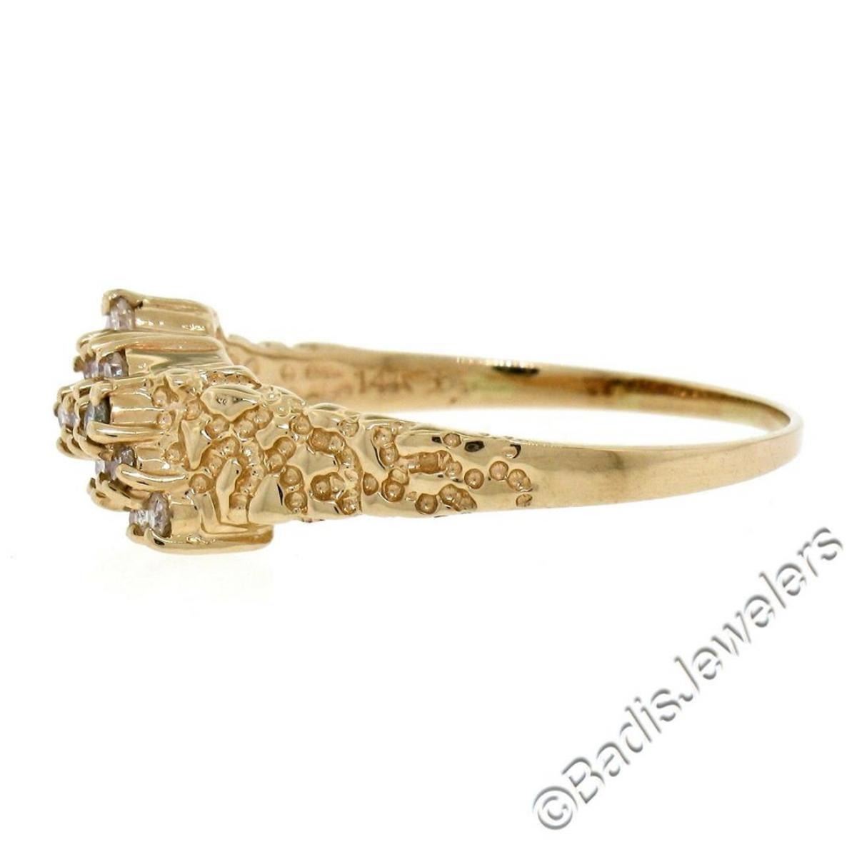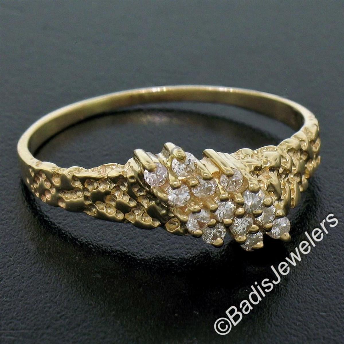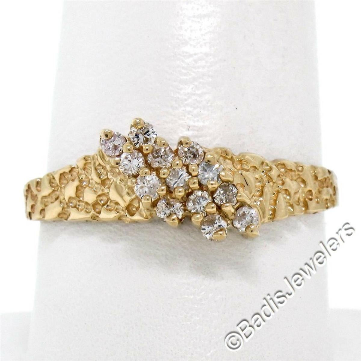 A 14kt yellow gold 0.30ctw round diamond (G/H - VS2/SI1) band ring with a nugget texture. The ring is size 10.0, weighs a total of 2.86 grams, and measures 7.85mm wide.