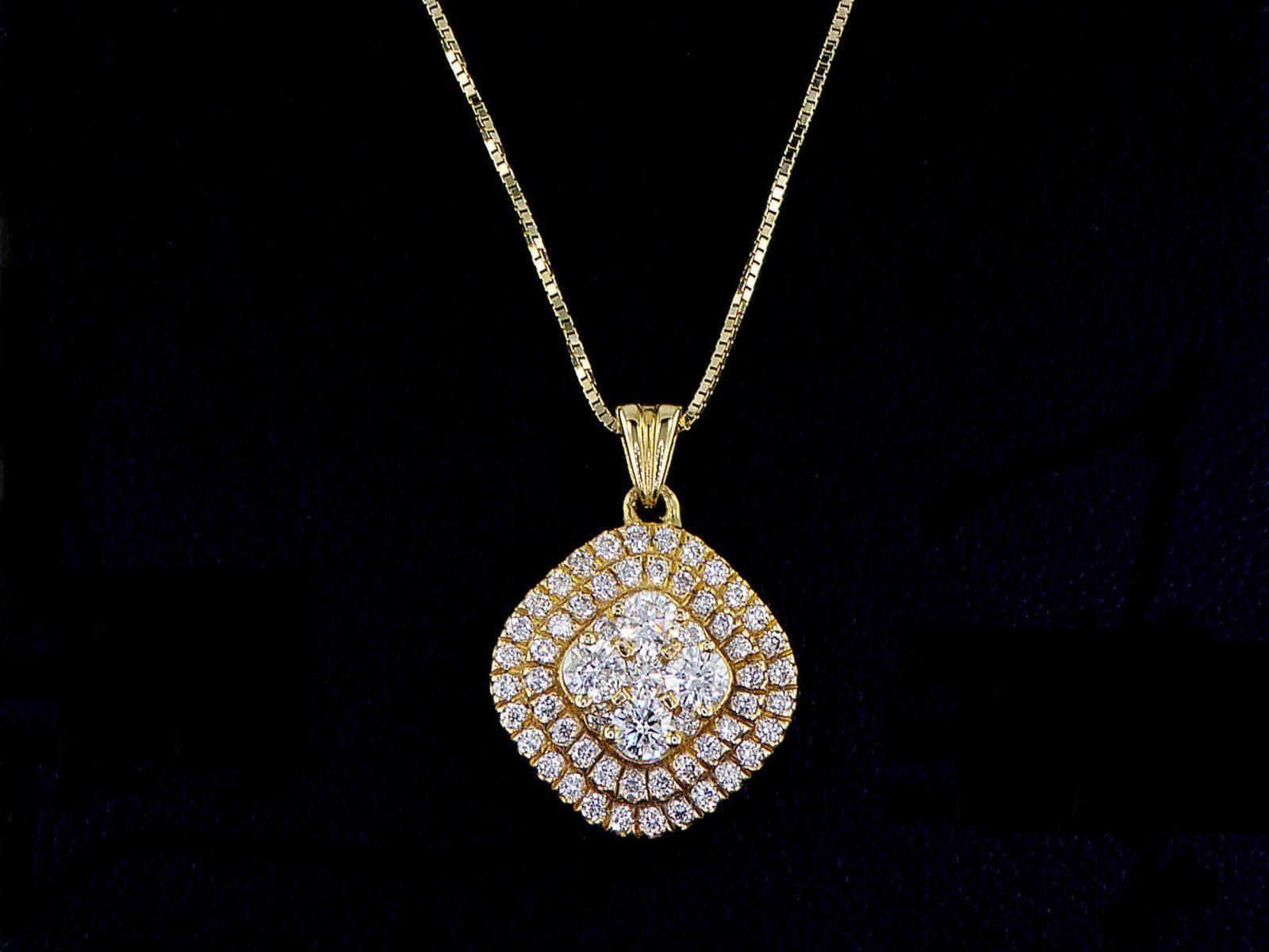 One 14k yellow gold pendant with chain (14k stamped), set with natural diamonds.