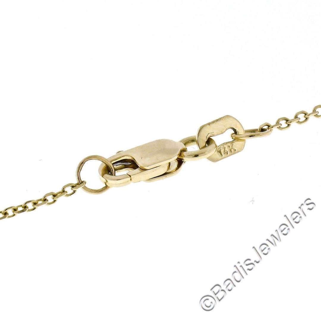 A like new 14kt yellow gold tear drop pendant set with 0.32ctw of round sapphires and 0.90ctw of round diamonds (F/G - VS1/VS2). With 20 inch cable link chain, 7.13 grams total weight, measures 28.25x15.70mm.