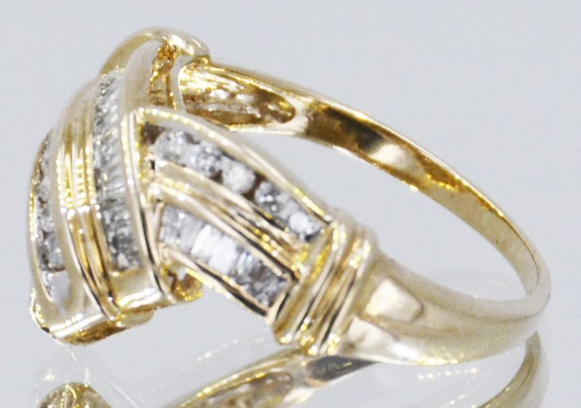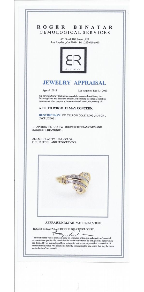 14kt Yellow Gold 10.00 Approx grams including, 1.50cttw approx Round and Baguette Diamond G-H color SI clarity, size 9.5, Appraised Retail Value $3380.00