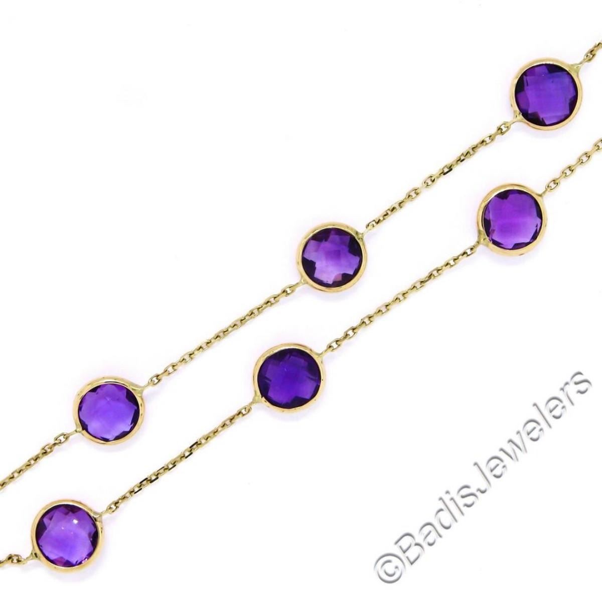 14kt Yellow Gold 5.25 ctw Bezel Set Amethyst by the Yard Cable Link Chain Bracel