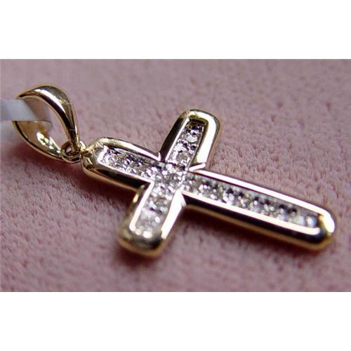 14kt yellow gold cross pendant with approximately .10ct brilliant white round cut diamonds. Comes in a nice presentation box and would make a great gift for that special someone.