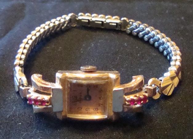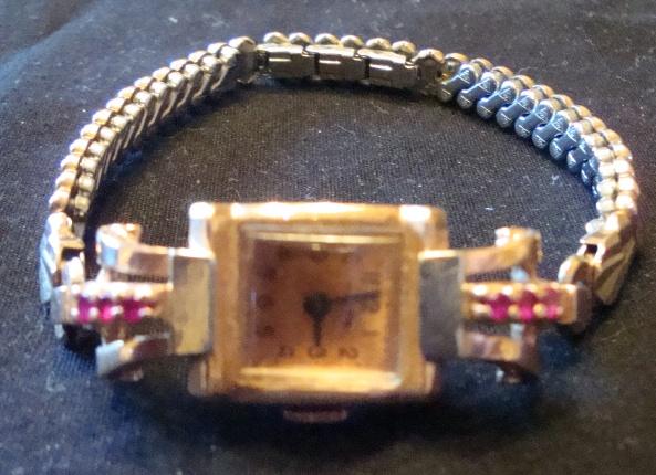 Very pretty non-working Kuper 14kt. Yellow gold watch with (6)rubies.
