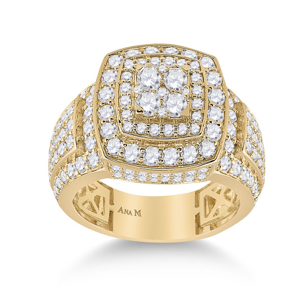 14kt Yellow Gold Mens Round Diamond Square Ring 3 Cttw
