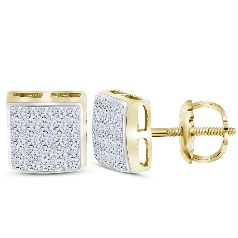 SKU: RB110802 ---- 14kt Yellow Gold Princess Diamond Square Cluster Stud Earrings 5/8 Cttw