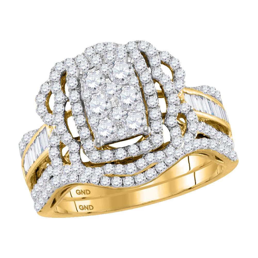 14kt Yellow Gold Round Diamond Bridal Wedding Ring Band Set 1-1/2 Cttw