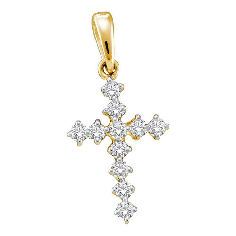 SKU: RB39079 ---- 14kt Yellow Gold Round Diamond Cross Faith Pendant 1/10 Cttw