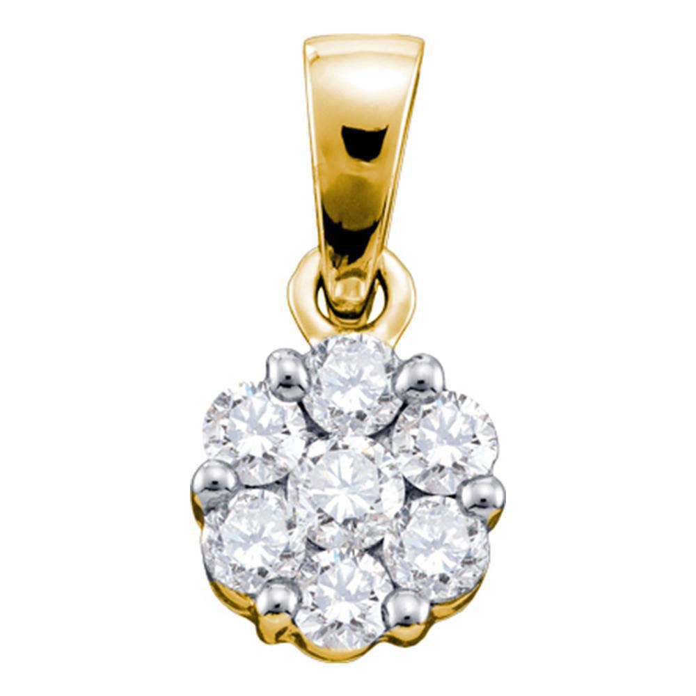 14kt Yellow Gold Round Diamond Flower Cluster Pendant 3/4 Cttw