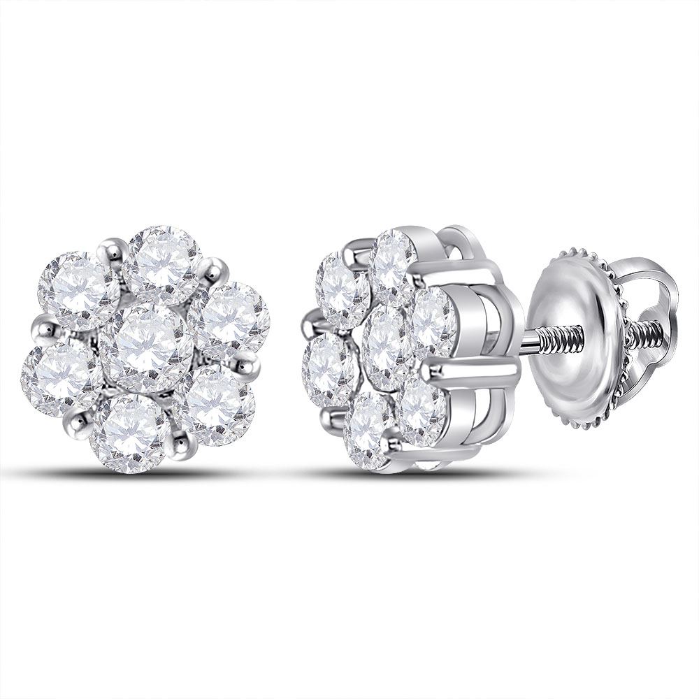 14kt Yellow Gold Round Diamond Flower Cluster Screwback Earrings 2.00 Cttw