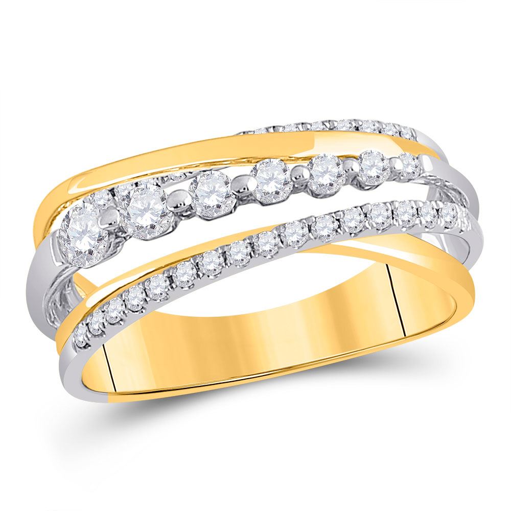 SKU: RB118257 ---- 14kt Yellow Gold Round Diamond Graduated Crossover Band Ring 1/2 Cttw