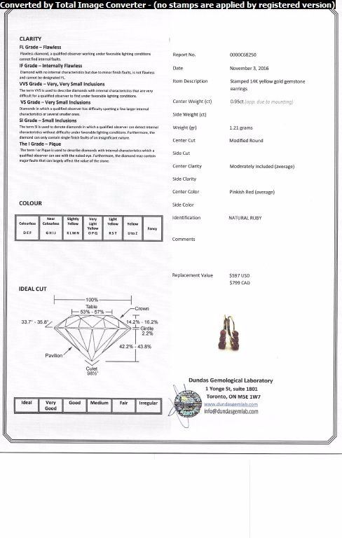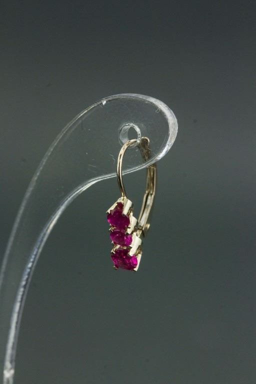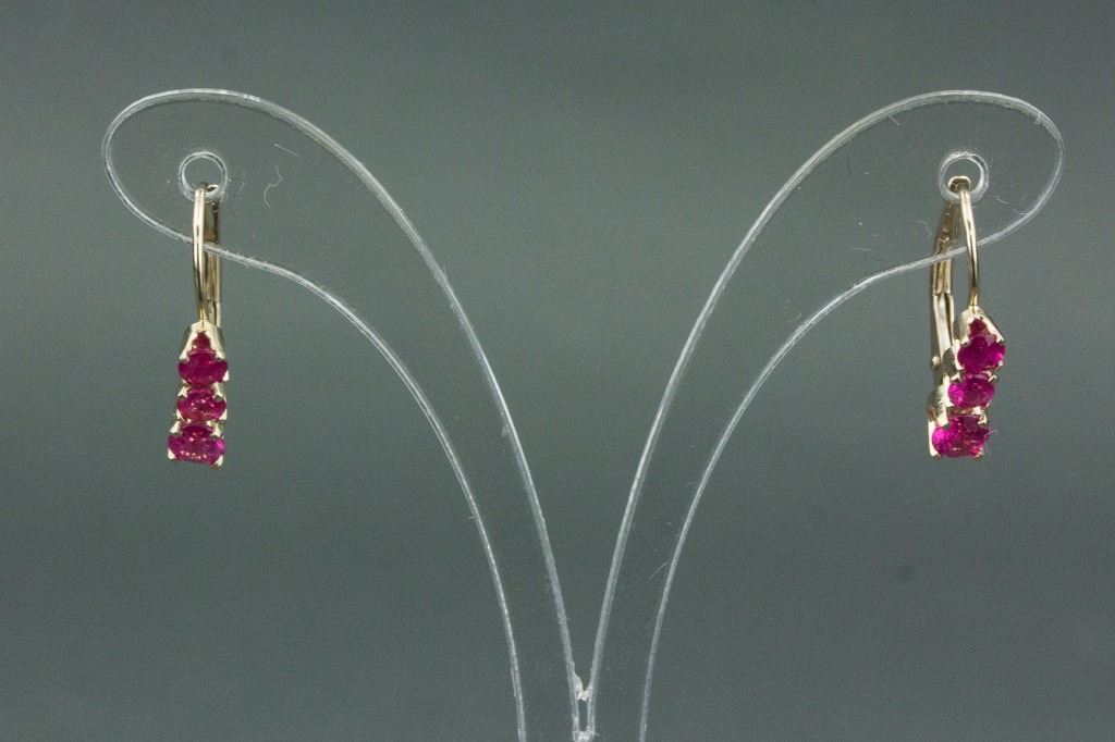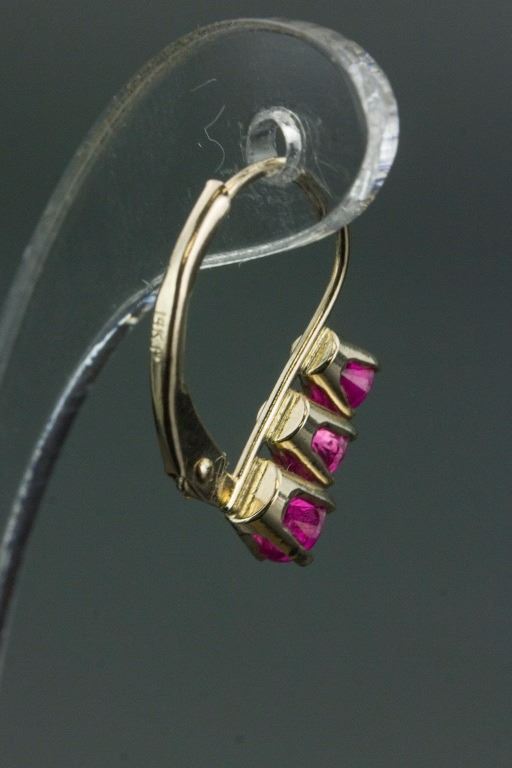 Stamped 14k yellow gold gemstone earrings; set with 0.95 ct round-cut natural ruby; certified replacement value CAD$799; 1.21 grams
