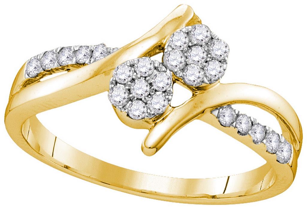 14kt Yellow Gold Womens Round Diamond Double Cluster Br **|**|** 14kt Yellow Gold Womens Round Diamond Double Cluster Bridal Wedding Engagement Ring 1/3 Cttw