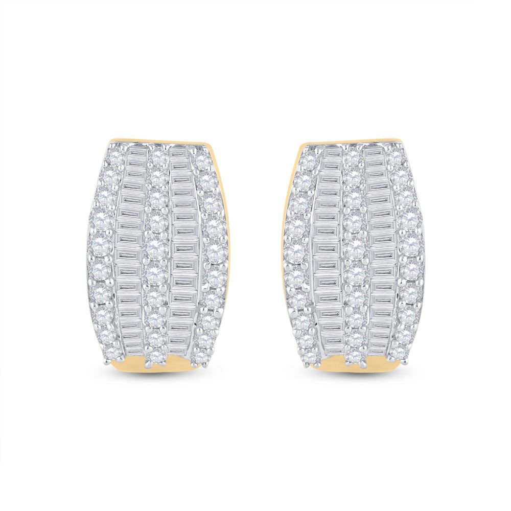 14kt Yellow Gold Womens Round Baguette Diamond French-clip Hoop Earrings 1.00 Cttw