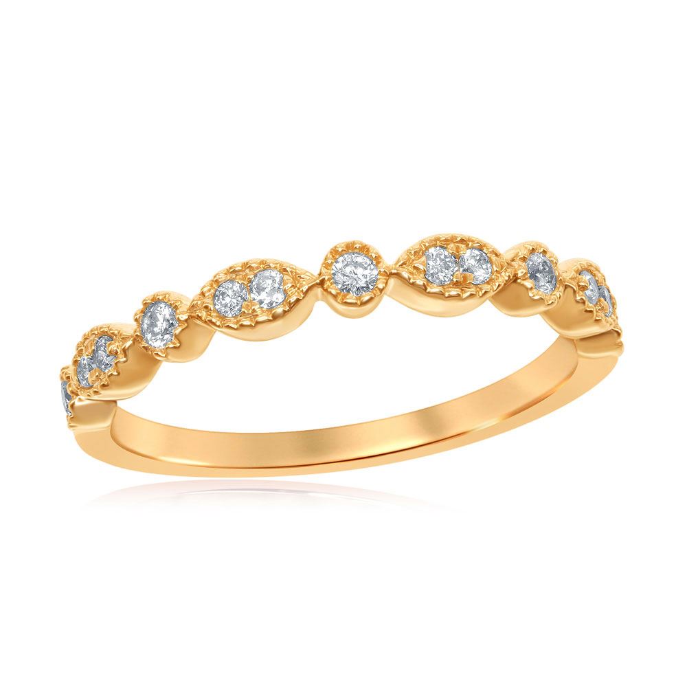 14kt Yellow Gold Womens Round Diamond Milgrain Stackable Band Ring 1/6 Cttw