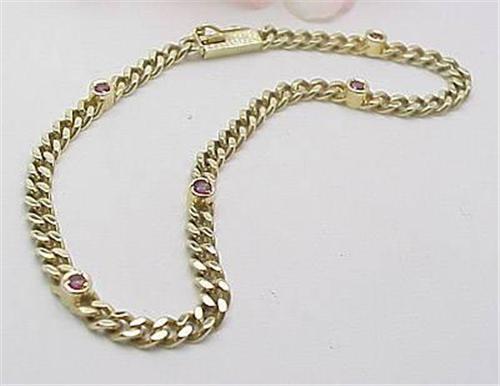 14kt link bracelet with five bezel set rubies 8.3gr 7"