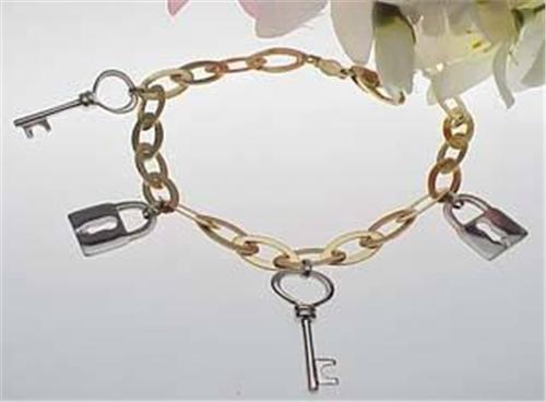 14kt two-tone bracelet with lock and key charms 10.4gr