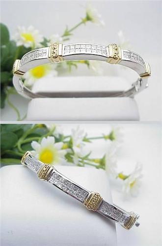 14kt two-tone diamond bangle bracelet approx 1.75Ctw 22.3gr
